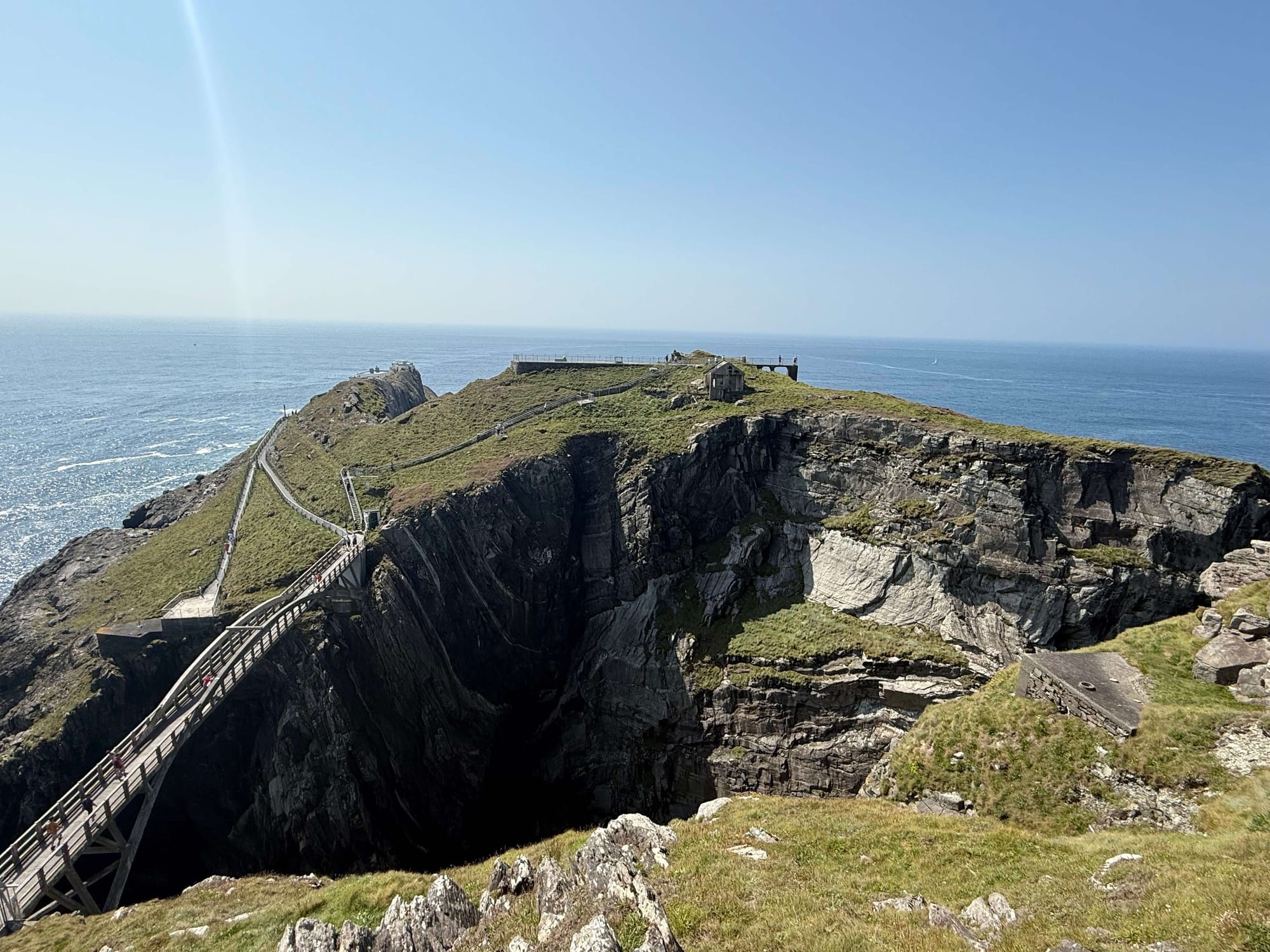 I even put it ahead of the Cliffs because I feel everywhere you turn, there's a different type of scenery here. It has cliffs, a bridge high above the water. The gap between the rocks when you're on the bridge. There's more views from the behind the signal station. Look to the right and you can see down the northern side of the Mizen Peninsula. Walk back towards the visitors centre and you see cows with more scenic pasture field in Ireland.