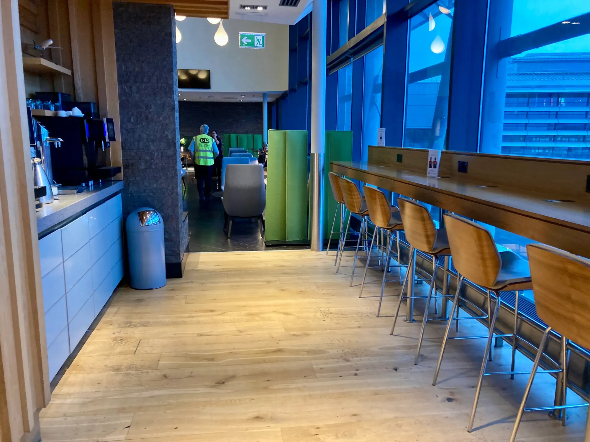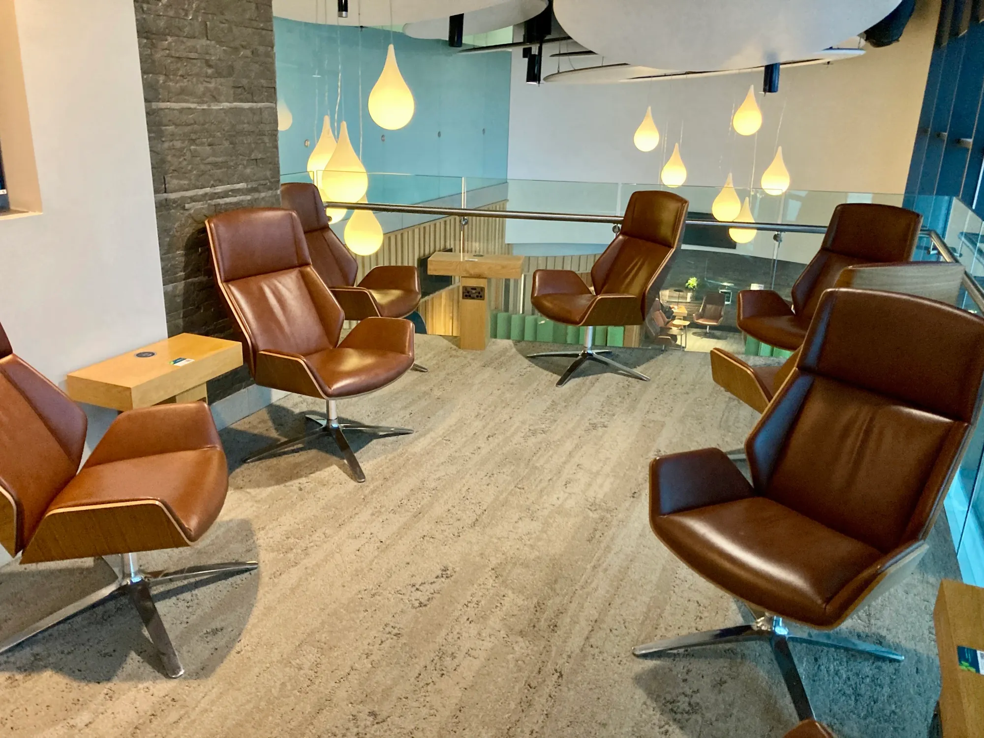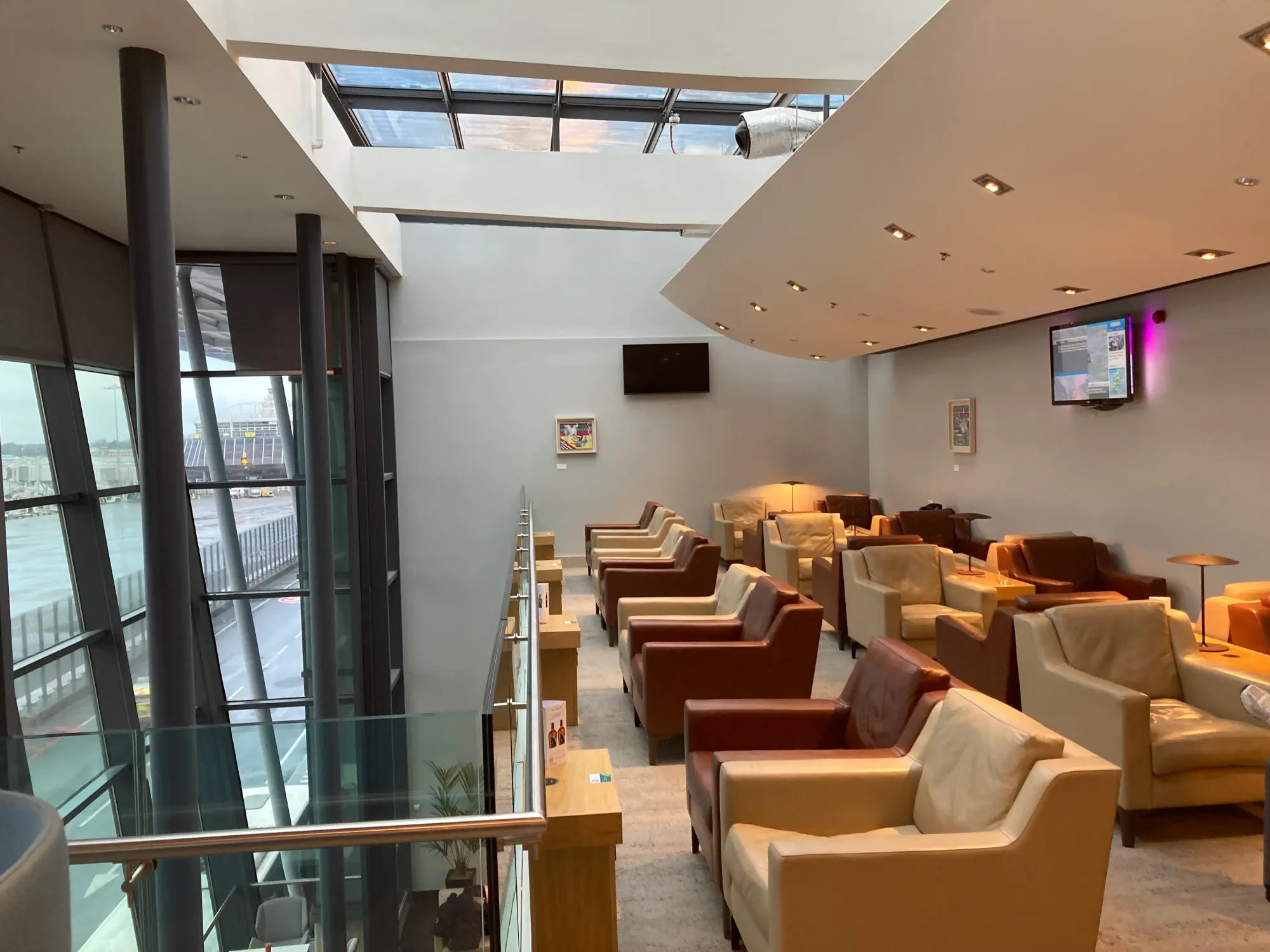 They did an excellent job with the seating and the spacing. Every time that I'm in the lounge, it does feel relaxed and it has different zones & vibes so you can find what you're looking for. There are floor to very high ceiling windows giving views out over the airfield.
