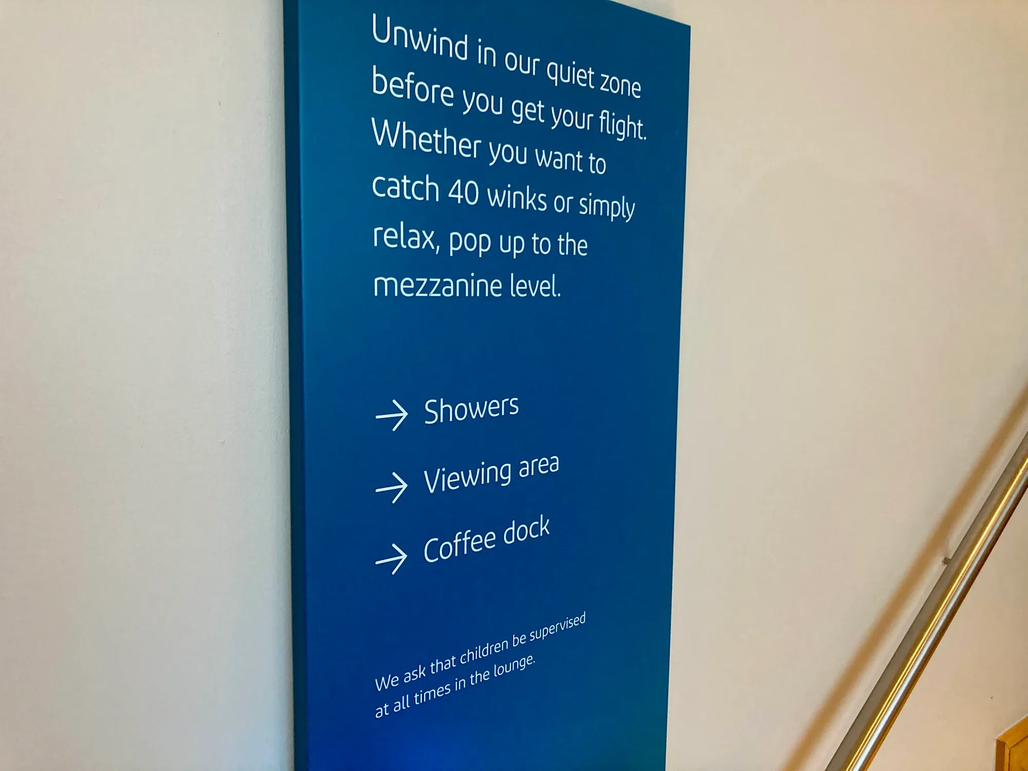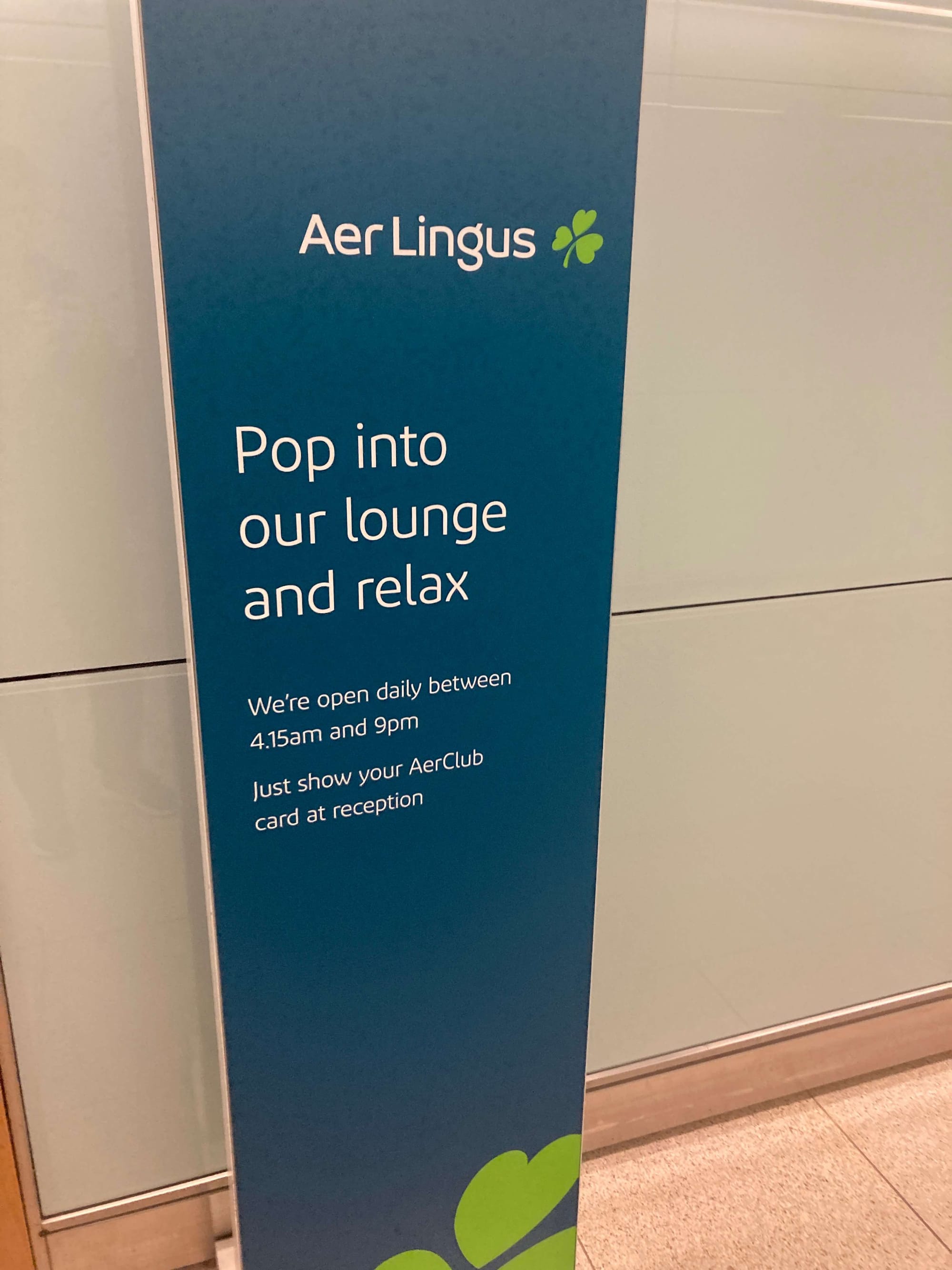 The entrance area is underwhelming. There's just a small sign outside. But inside, Aer Lingus staff the front desk and they always give a very friendly Irish Céad Mile Fáilte welcome