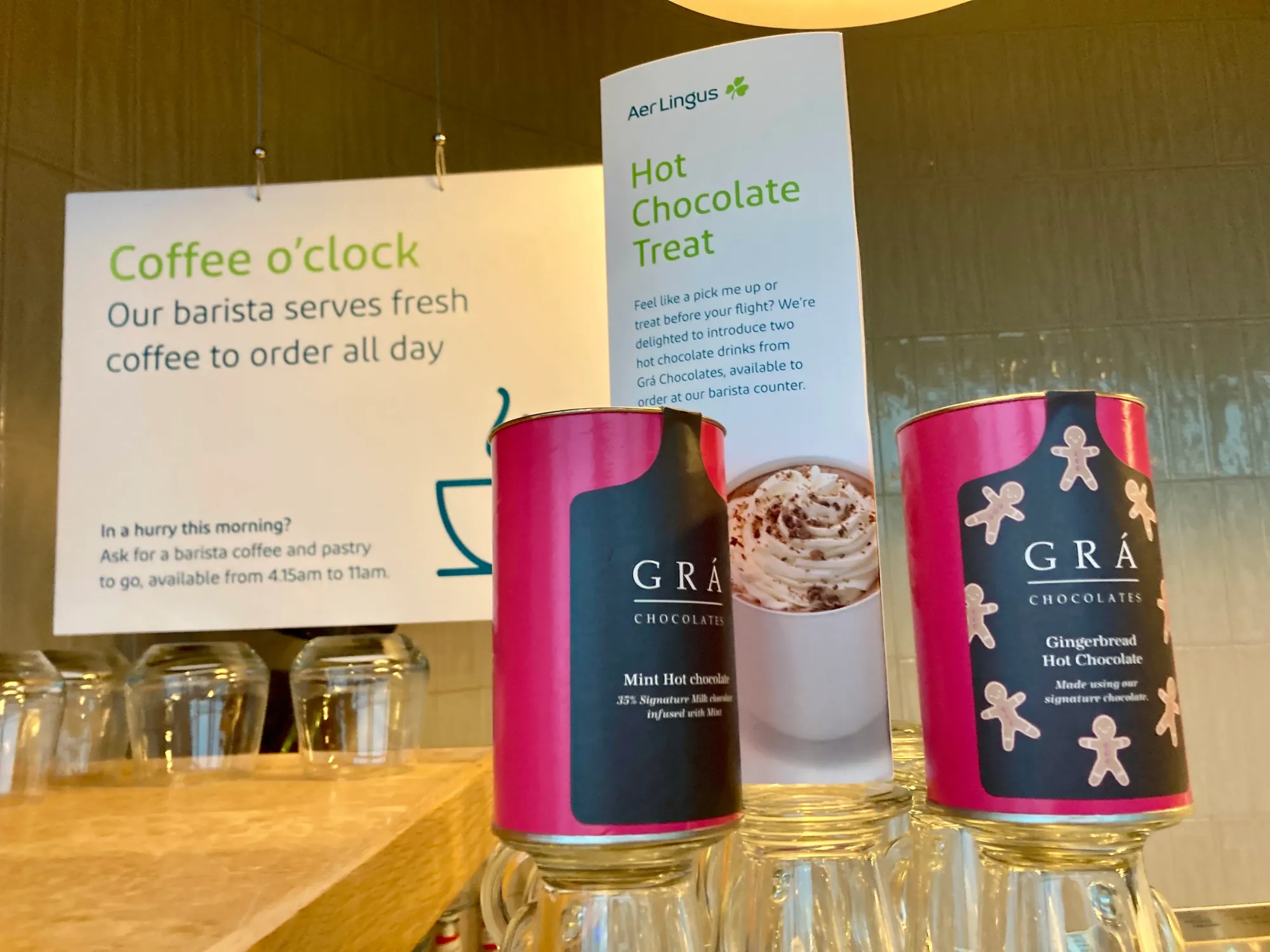 I did like the local Irish company being highlighted for the hot chocolate & spirits too. Aer Lingus are good at that.