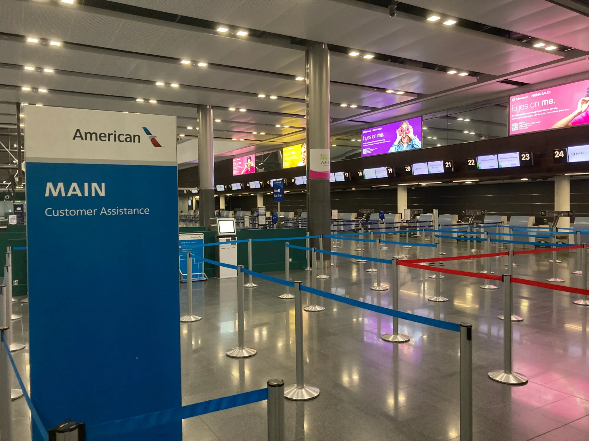 The left half is for the US airlines and Emirates. BA & Iberia are in the middle. Aer Lingus has the entire right side of the check-in area.