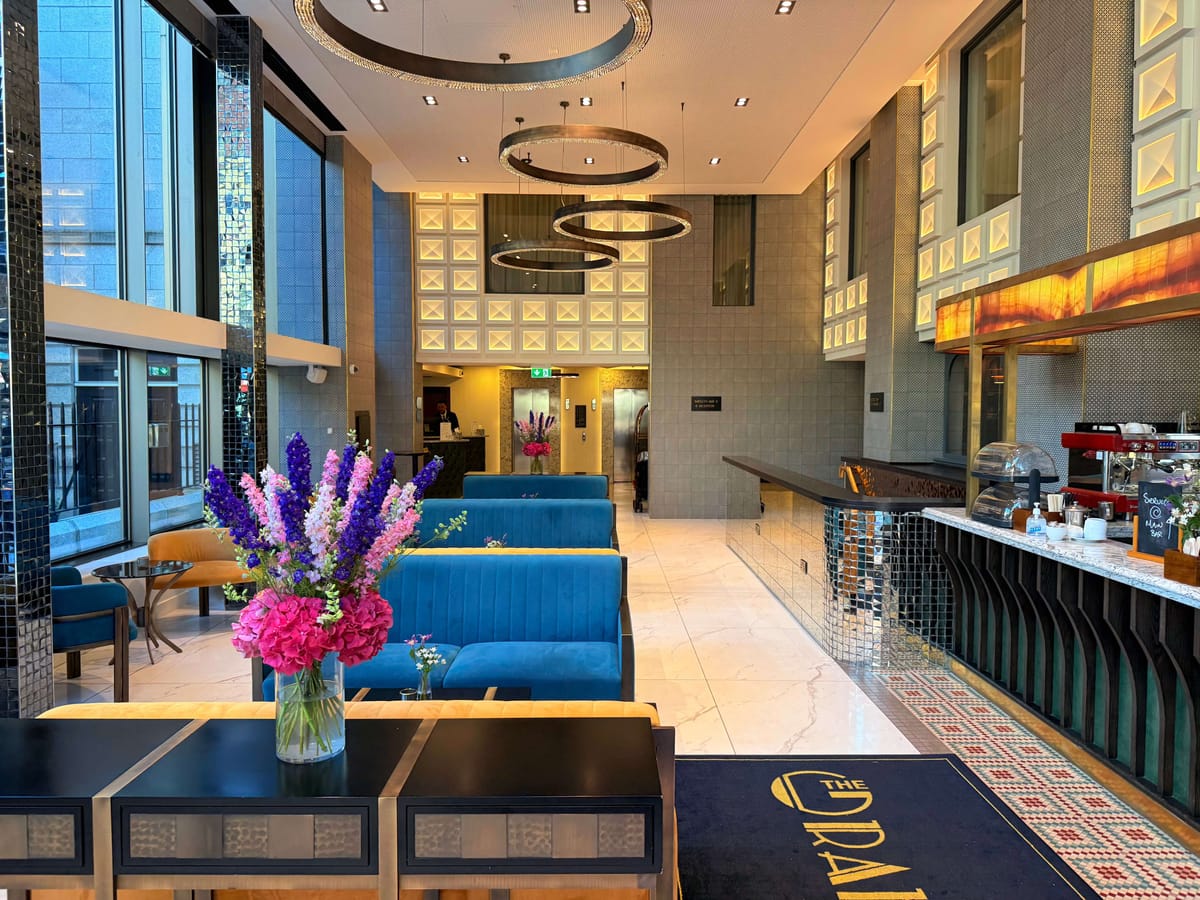 If you fly business class on EI, you can access this tiny lounge at the end of the luggage hall. It's just enough space for a coffee but most importantly a shower.