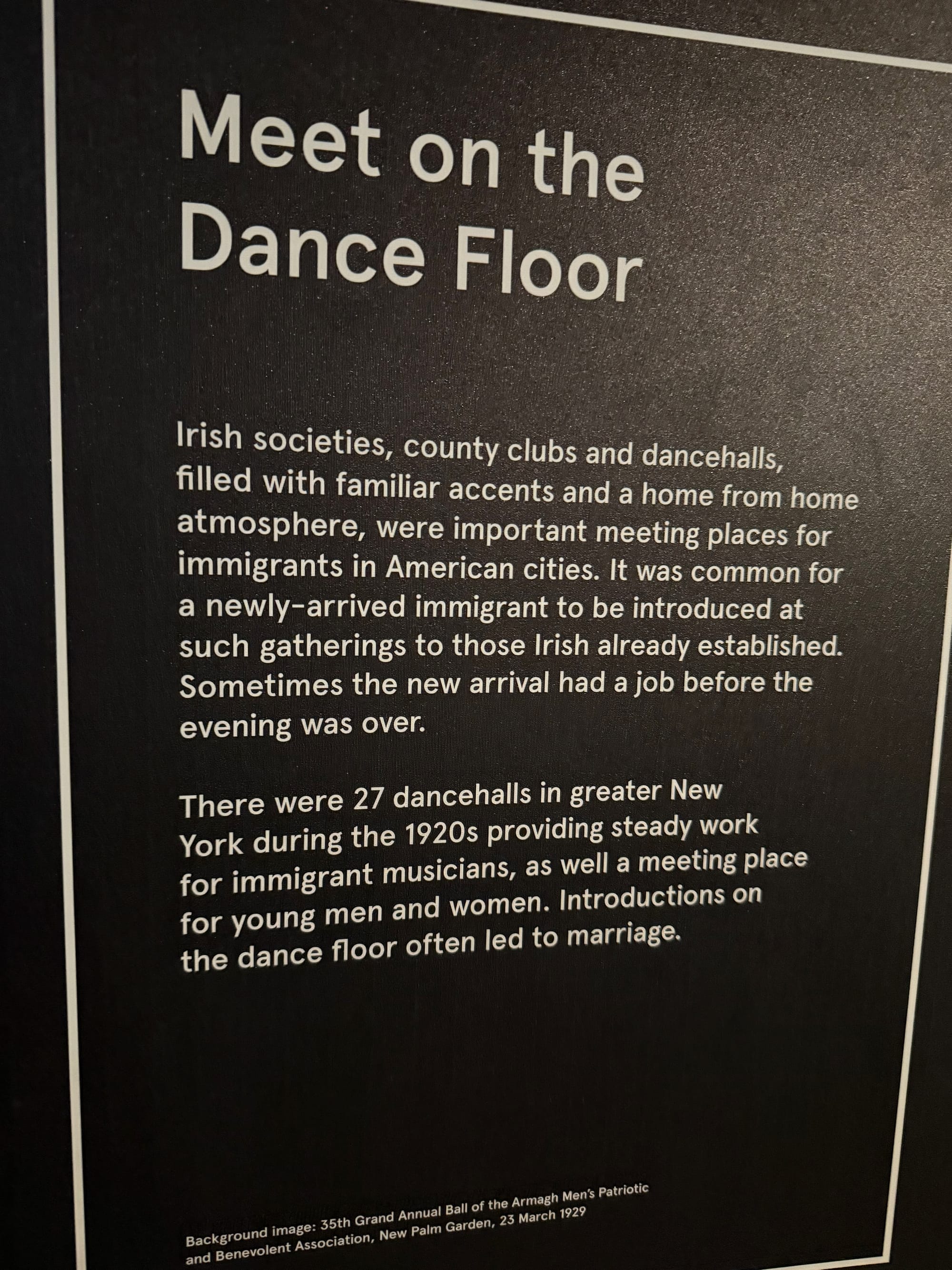 The museum has 20 different rooms following the journey of Irish emigrants. It starts with Leaving the Island, then Settling In A New World, and how we grew in influence. It builds up the story of the Irish like a Hollywood movie.