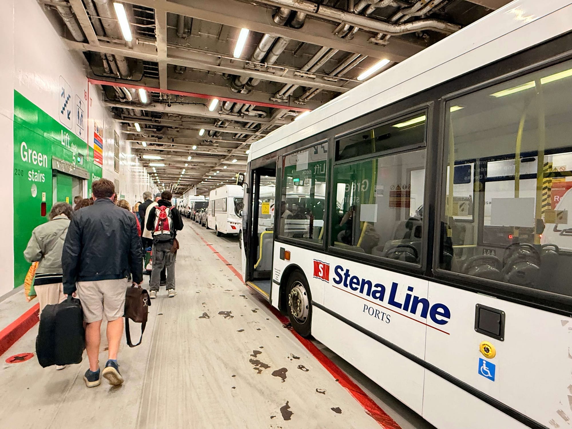 Foot passengers are brought onto the ship by a bus. It took less than five minutes until we were on deck 5 next to the cars already parked.