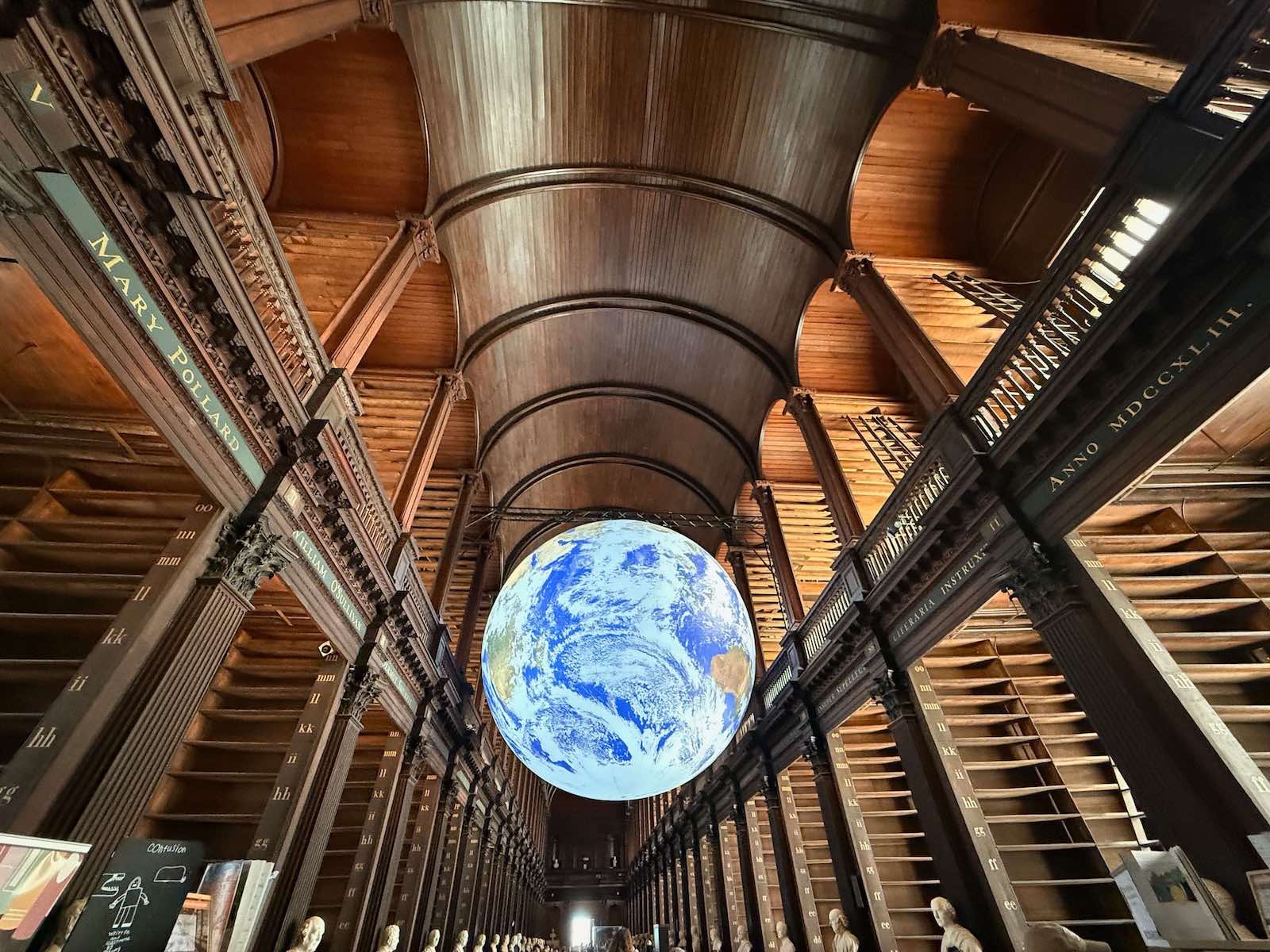 Everyone else was captivated by Gaia, a large hanging spinning globe. Its brightness is a lovely contrast to the brown library tones. It is captivating watching it slowly spin around.