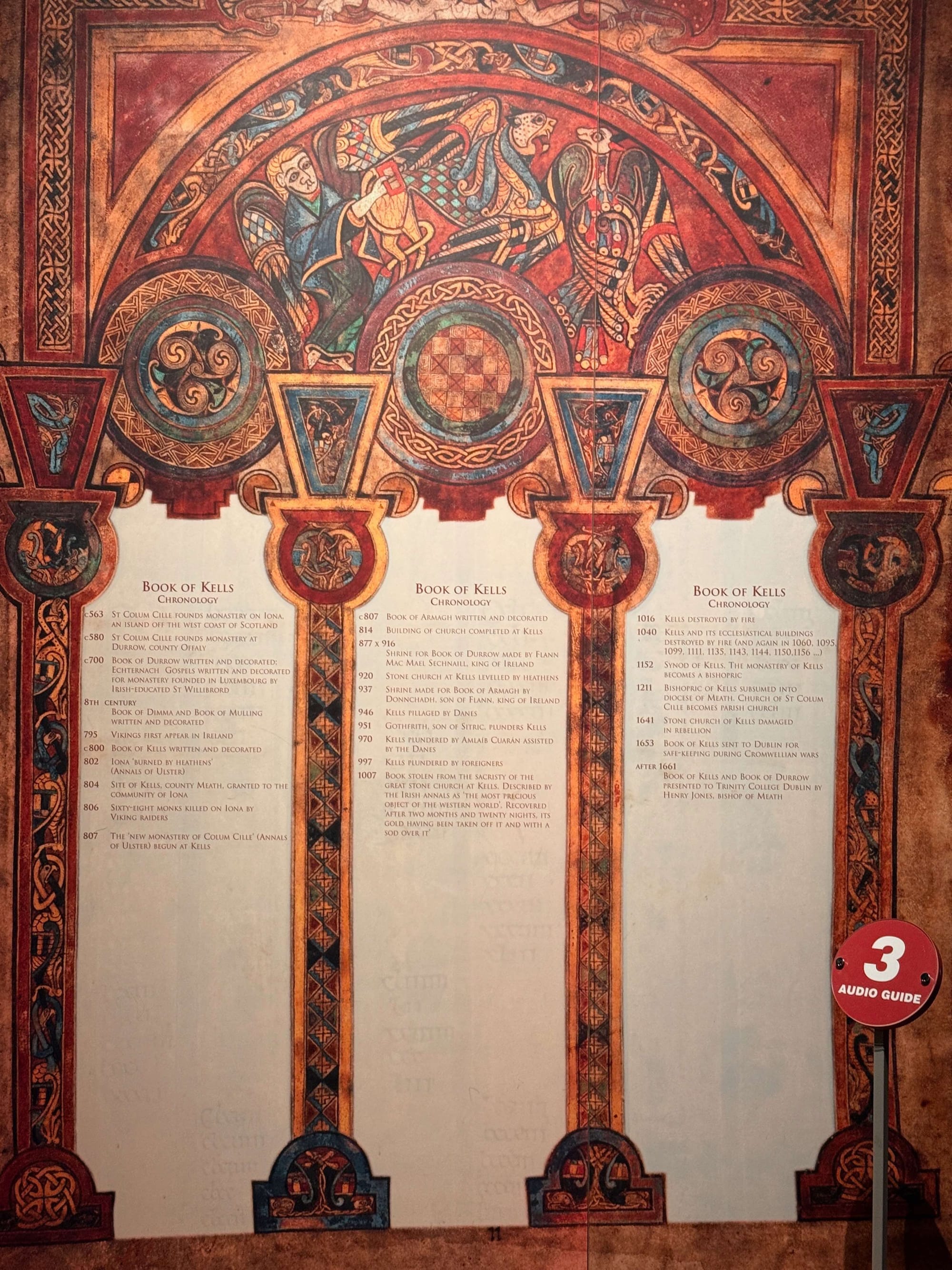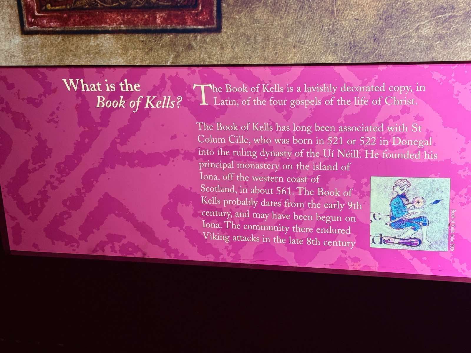 There's an exhibit with information on the Book of Kells, the other less famous books of the time and full floor to ceiling images of some of the pages from the Book.