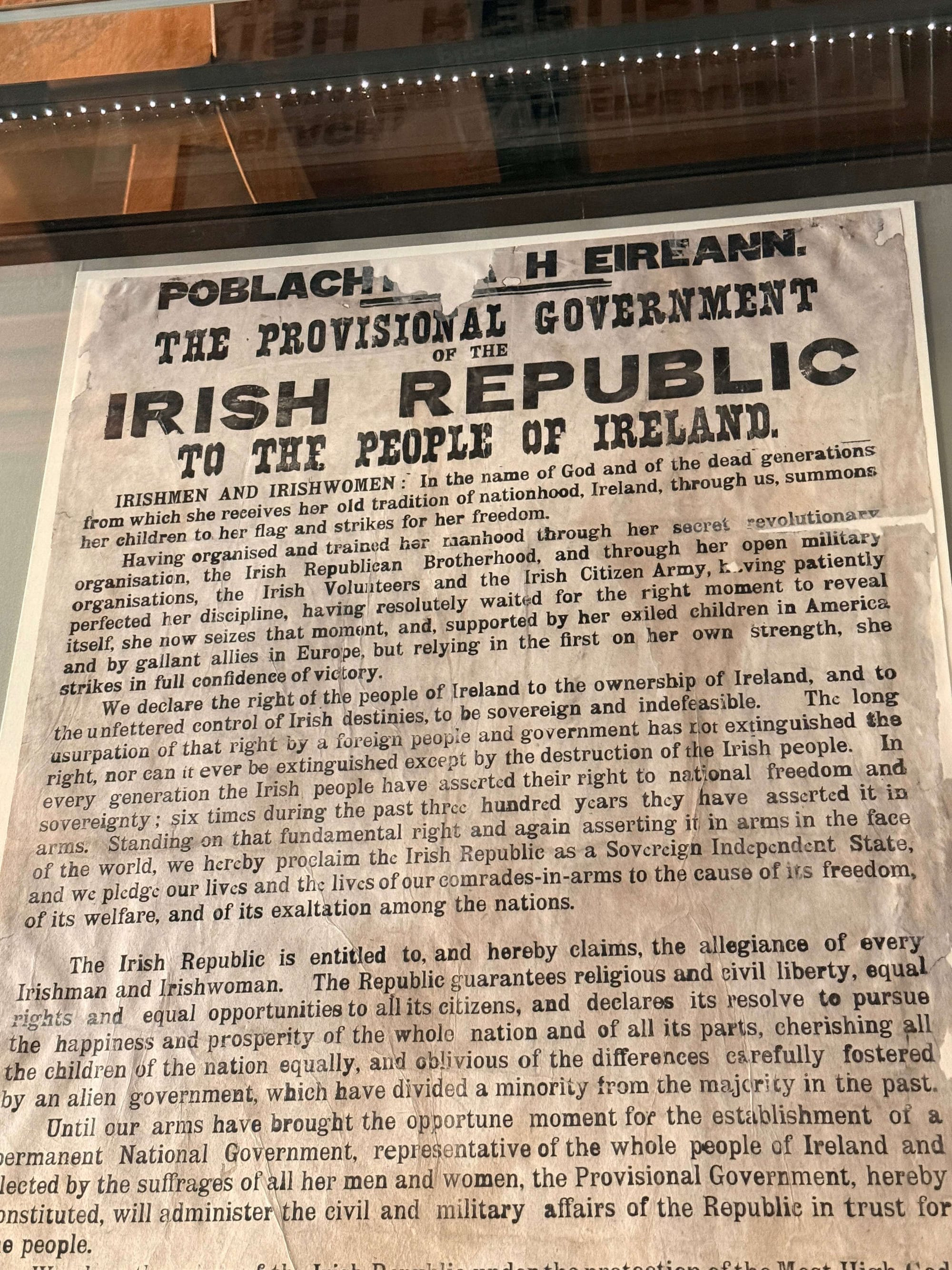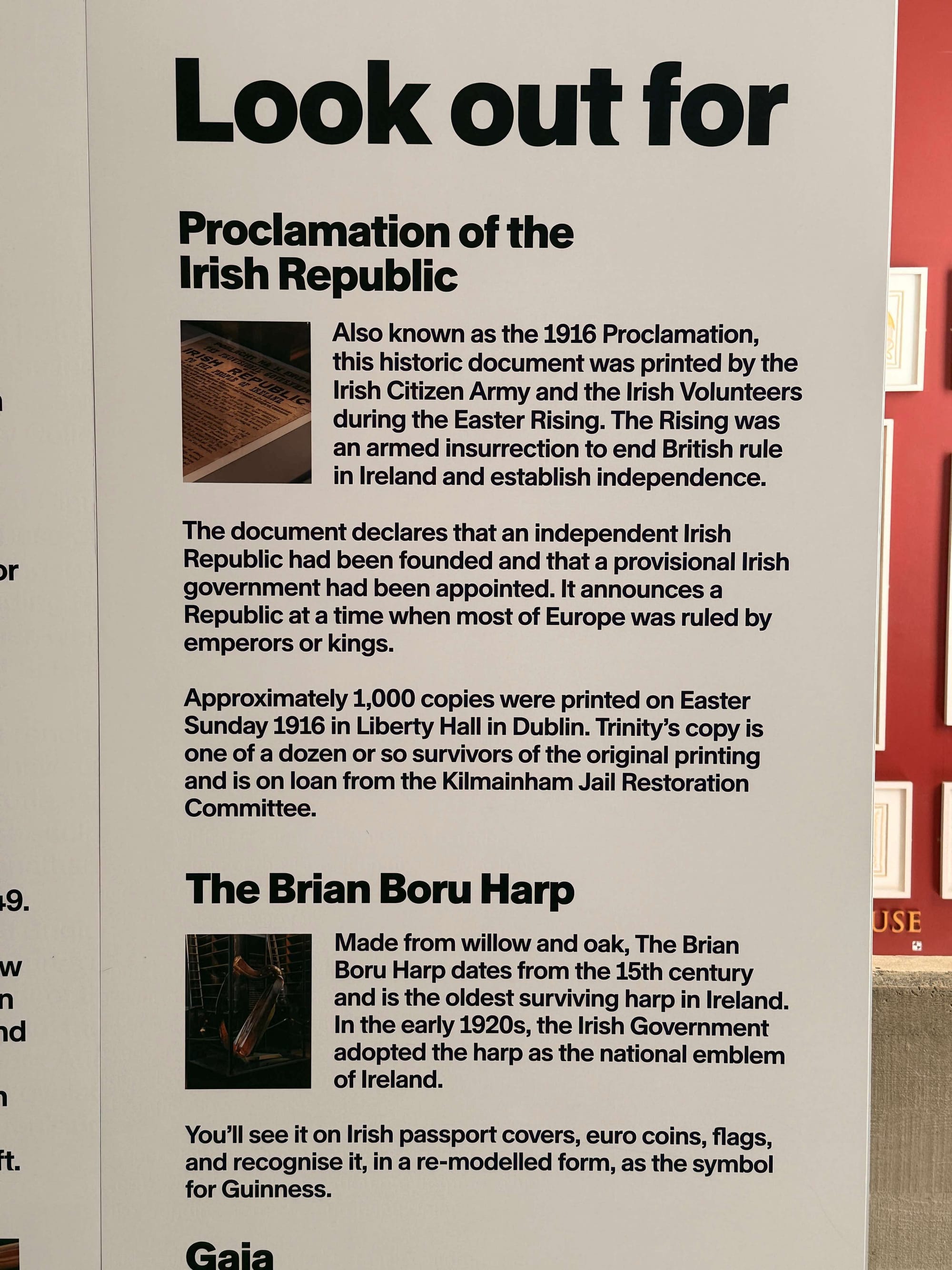 Look for one of the copies of the original Irish Proclamation of Independence, it's overlooked given its significance.