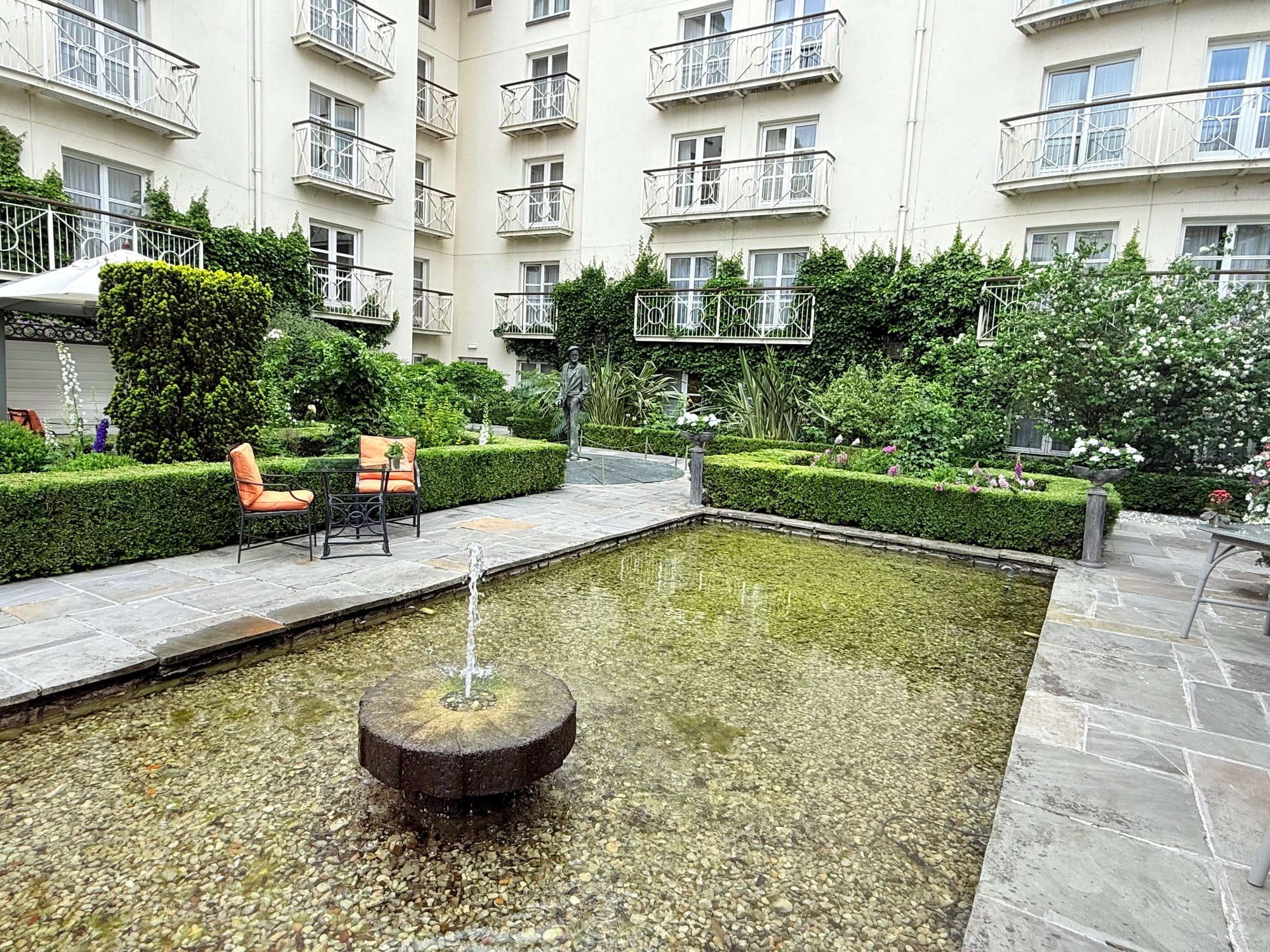 I'm in the Merrion most week meeting guests for my Jetlag Walking Tour. I always make a point to get there early and enjoy its 5 star luxury. It's extremely central in Dublin, but in a quieter & more refined area than other hotels. The Irish Taoiseach (the prime minister) offices are directly across the road. The Merrion hotel is formed from Georgian-era townhomes combined into one of Ireland's best hotel. Be sure to book a table at its 2 star Michelin restaurant, Patrick Guilbaud's. It was the first two star in Ireland and has maintained it since.